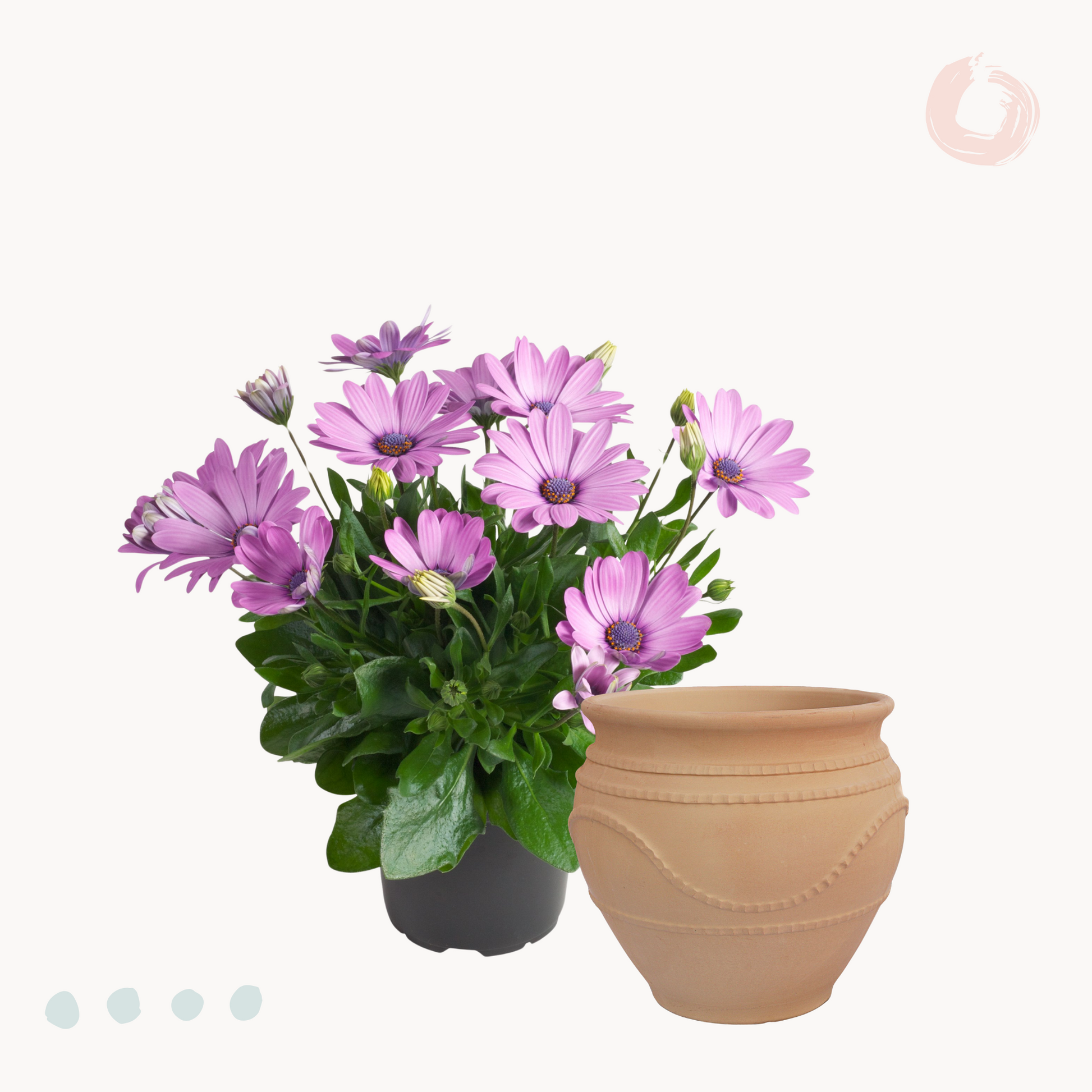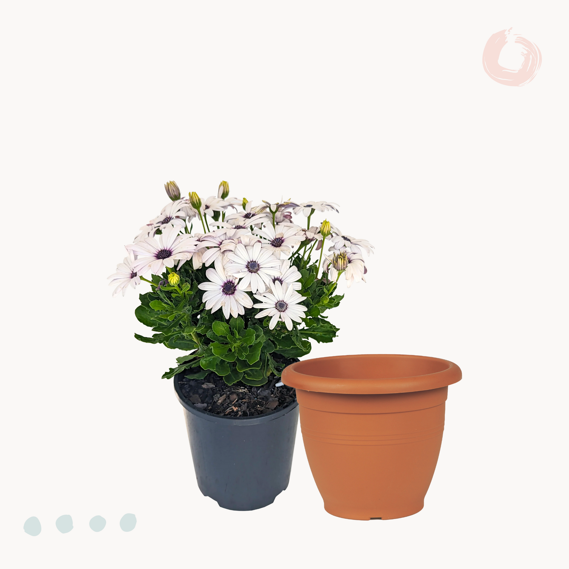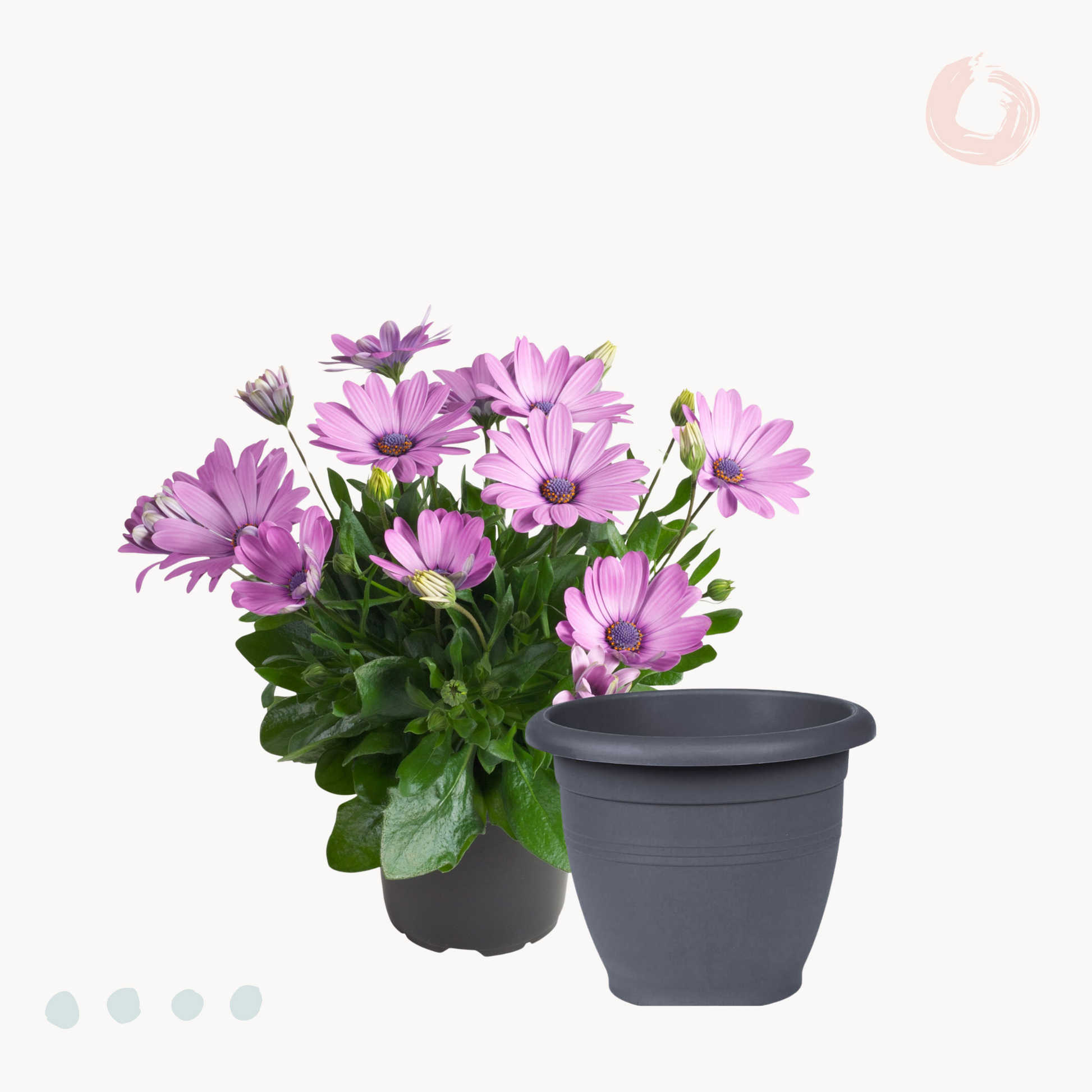 Φυσικά σήμα κατατεθέν της Διμορφοθήκης είναι τα εντυπωσιακά λουλούδια της, που κάνουν την εμφάνιση τους στα μέσα της άνοιξης και εναλλάσσονται μέχρι και τα τέλη του φθινοπώρου. Με σχήμα τυπικής μαργαρίτας, αλλά σαφώς μεγαλύτερα, και με χρώματα όπως ροζ, φούξια, μωβ, πορτοκαλί, λευκό και κίτρινο, η Διμορφοθήκη θα αποτελέσει το απόλυτο υπερθέαμα για το μπαλκόνι ή τον κήπο σου! Σε ύψος μπορεί να φτάσει έως και το μισό μέτρο, ενώ το πλούσιο φύλλωμα του διατηρείται όλο το χρόνο.
