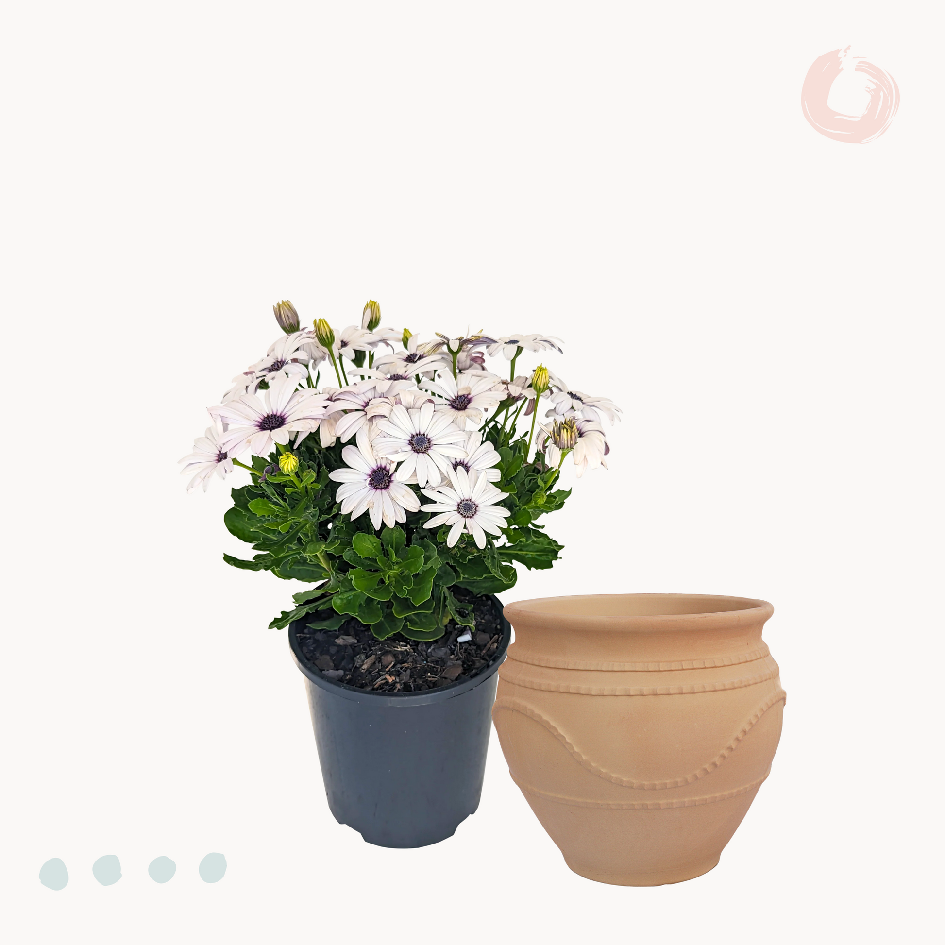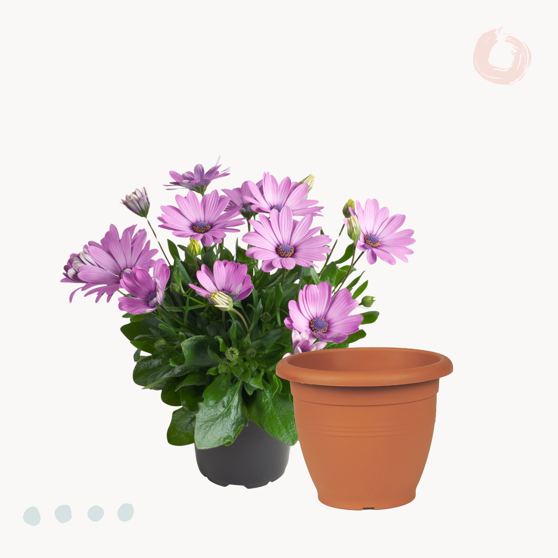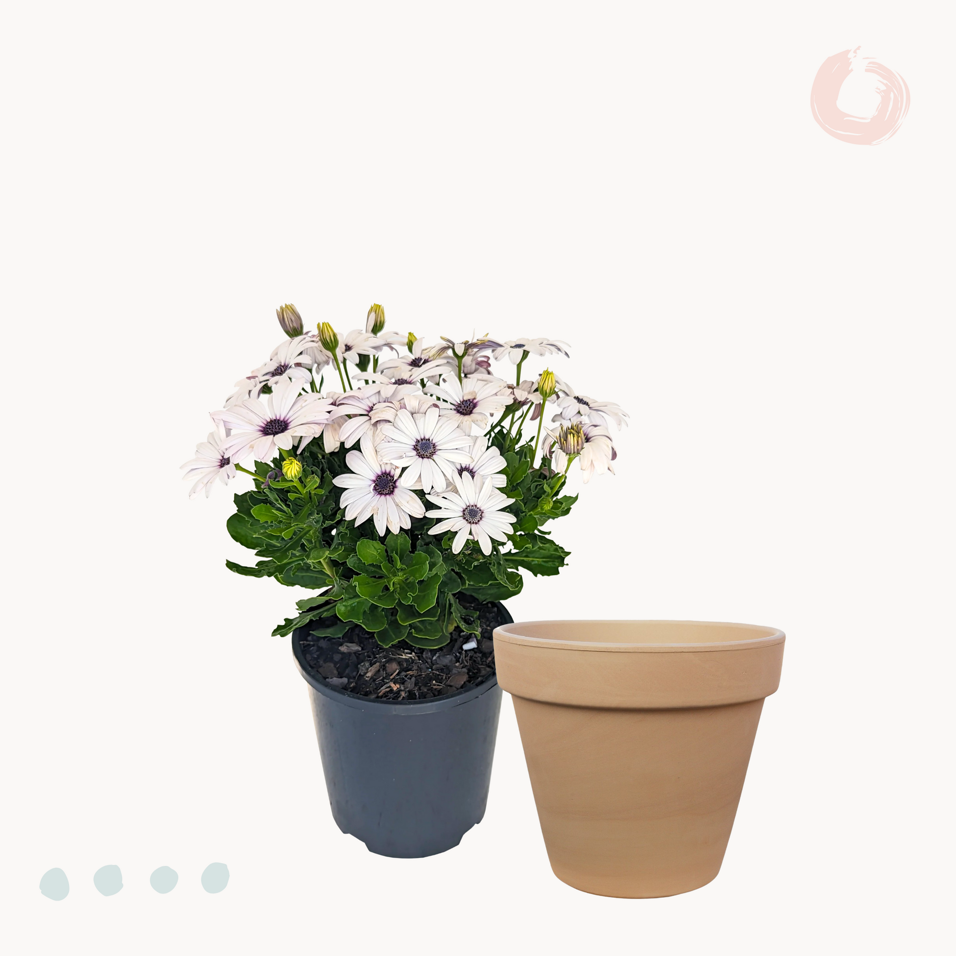Φυσικά σήμα κατατεθέν της Διμορφοθήκης είναι τα εντυπωσιακά λουλούδια της, που κάνουν την εμφάνιση τους στα μέσα της άνοιξης και εναλλάσσονται μέχρι και τα τέλη του φθινοπώρου. Με σχήμα τυπικής μαργαρίτας, αλλά σαφώς μεγαλύτερα, και με χρώματα όπως ροζ, φούξια, μωβ, πορτοκαλί, λευκό και κίτρινο, η Διμορφοθήκη θα αποτελέσει το απόλυτο υπερθέαμα για το μπαλκόνι ή τον κήπο σου! Σε ύψος μπορεί να φτάσει έως και το μισό μέτρο, ενώ το πλούσιο φύλλωμα του διατηρείται όλο το χρόνο.