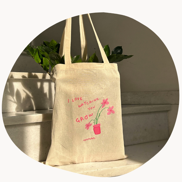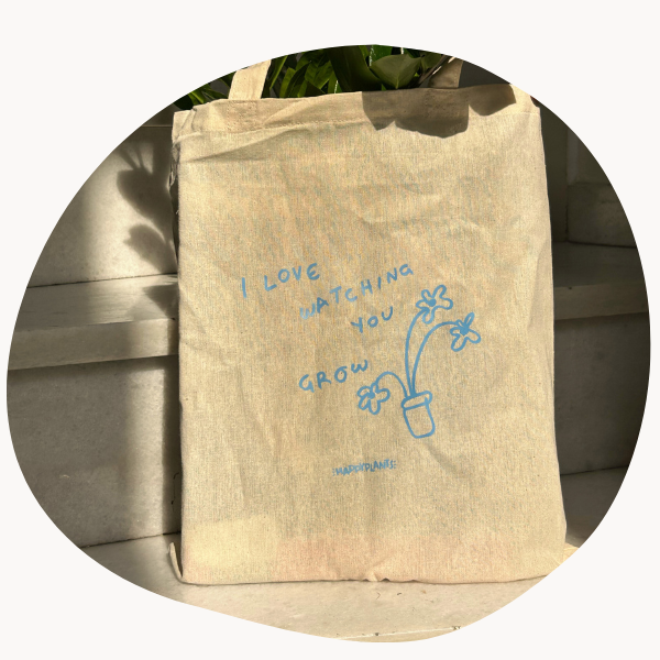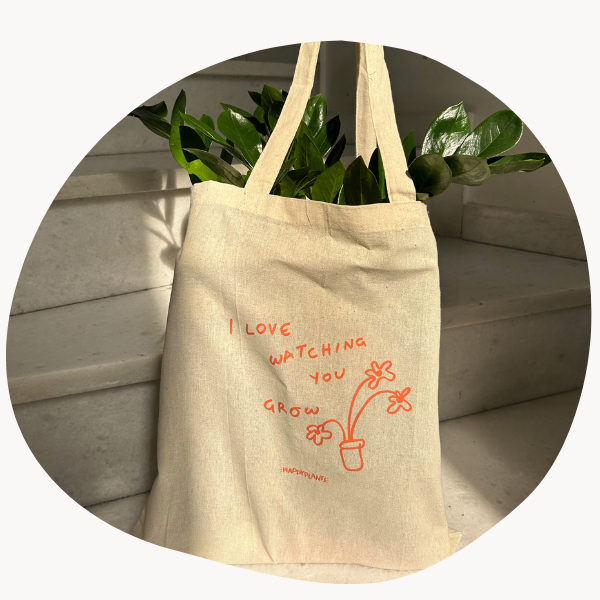 Η Happyplants totebag είναι μια καλαίσθητη υφασμάτινη totebag, ιδανική για να τις καθημερινές μετακινήσεις σου! Είναι κατασκευασμένη από ανθεκτικό ύφασμα και περιλαμβάνει το signature, "i love watching you grow" design του Happyplants!